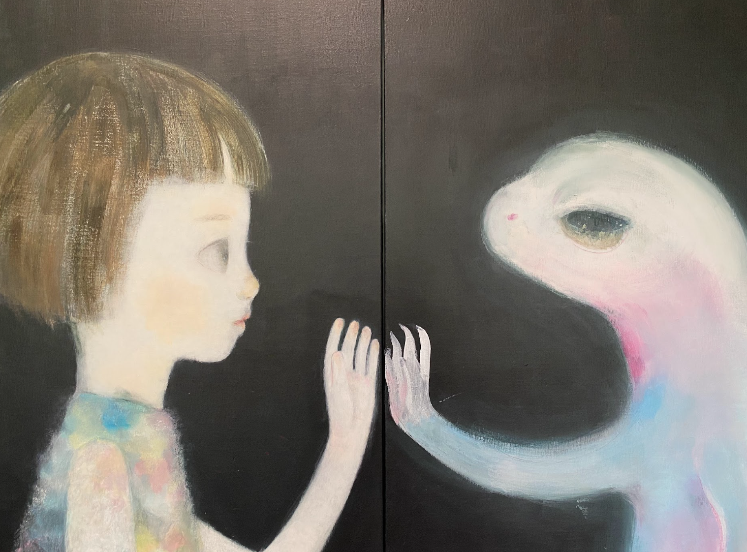 從藝術家吳若昕的畫作中,看到孩童未涉世的最純粹面貌,一念為善、一念為惡,善惡成了後天的濾鏡,但在孩童的視野,大抵無善惡之分,一草為枯、一草為榮,就好像是枯榮遞嬗,是自然的一部份,孩童們用最直接的心,與周圍萬物互動、展露最不修飾的情緒。