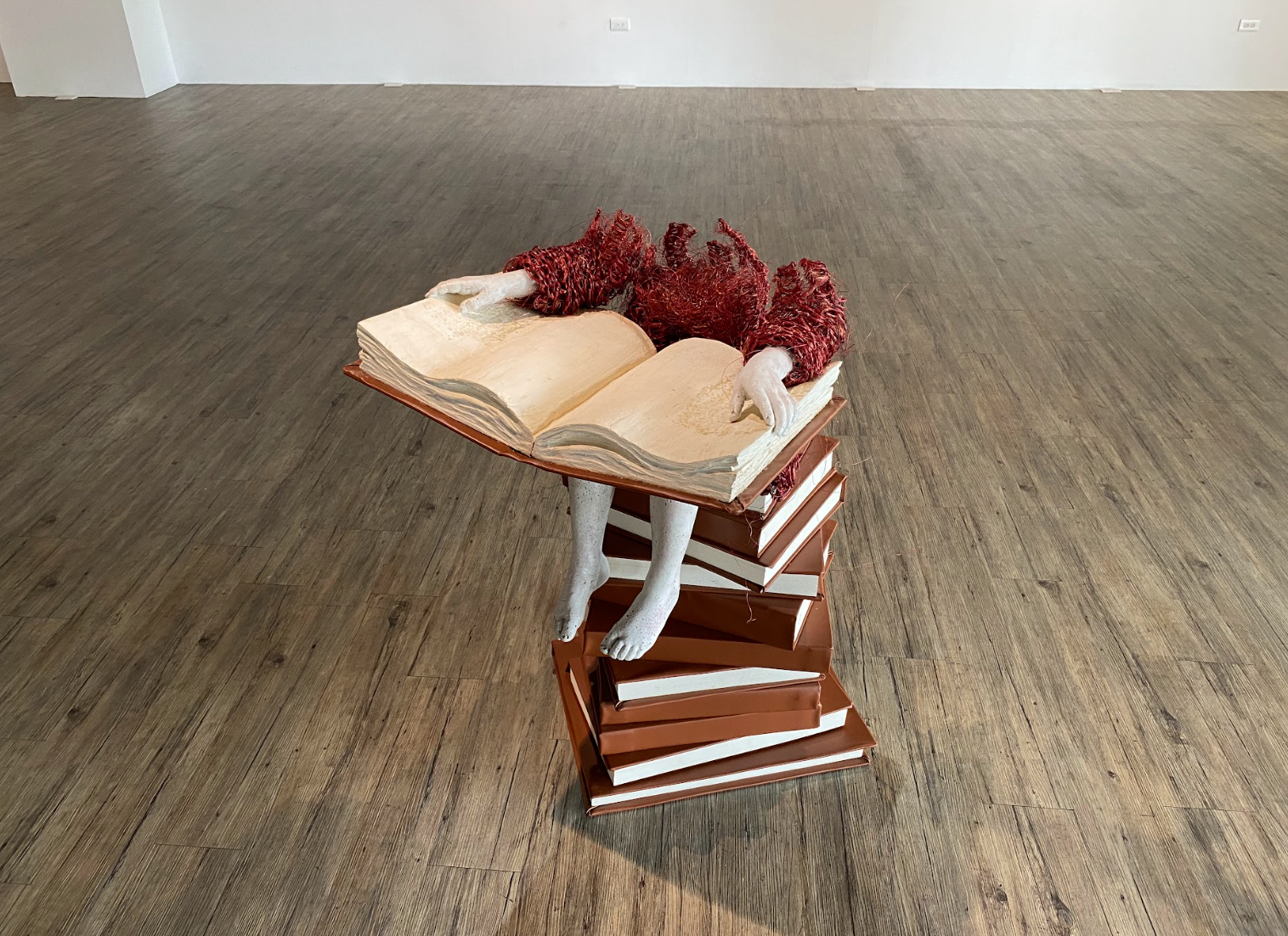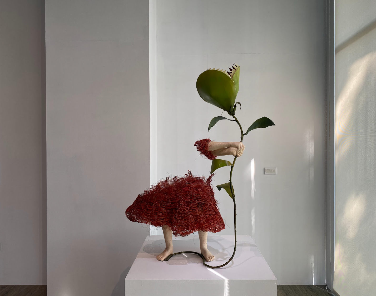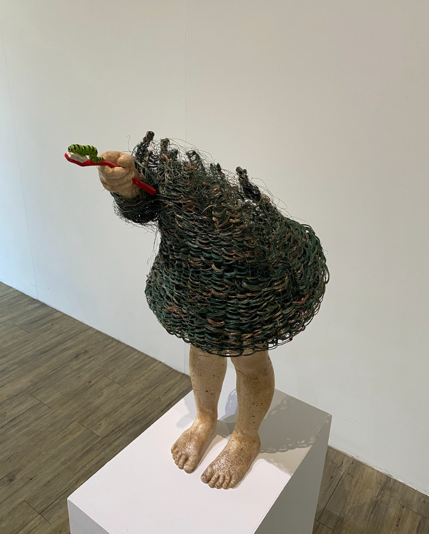 觀看藝術家Lene KILDE的雕塑品,則與個人成長經驗緊緊結合。維妙維肖的孩童動作,孩童的情緒幾乎就要具象化了,藝術家卻反而在孩童的面目上留了一個空白,這時,自動帶入的是觀展者最當下的情緒,生氣、調皮、悲傷、困惑、開心,各種情緒被包容在同一個雕塑品上。