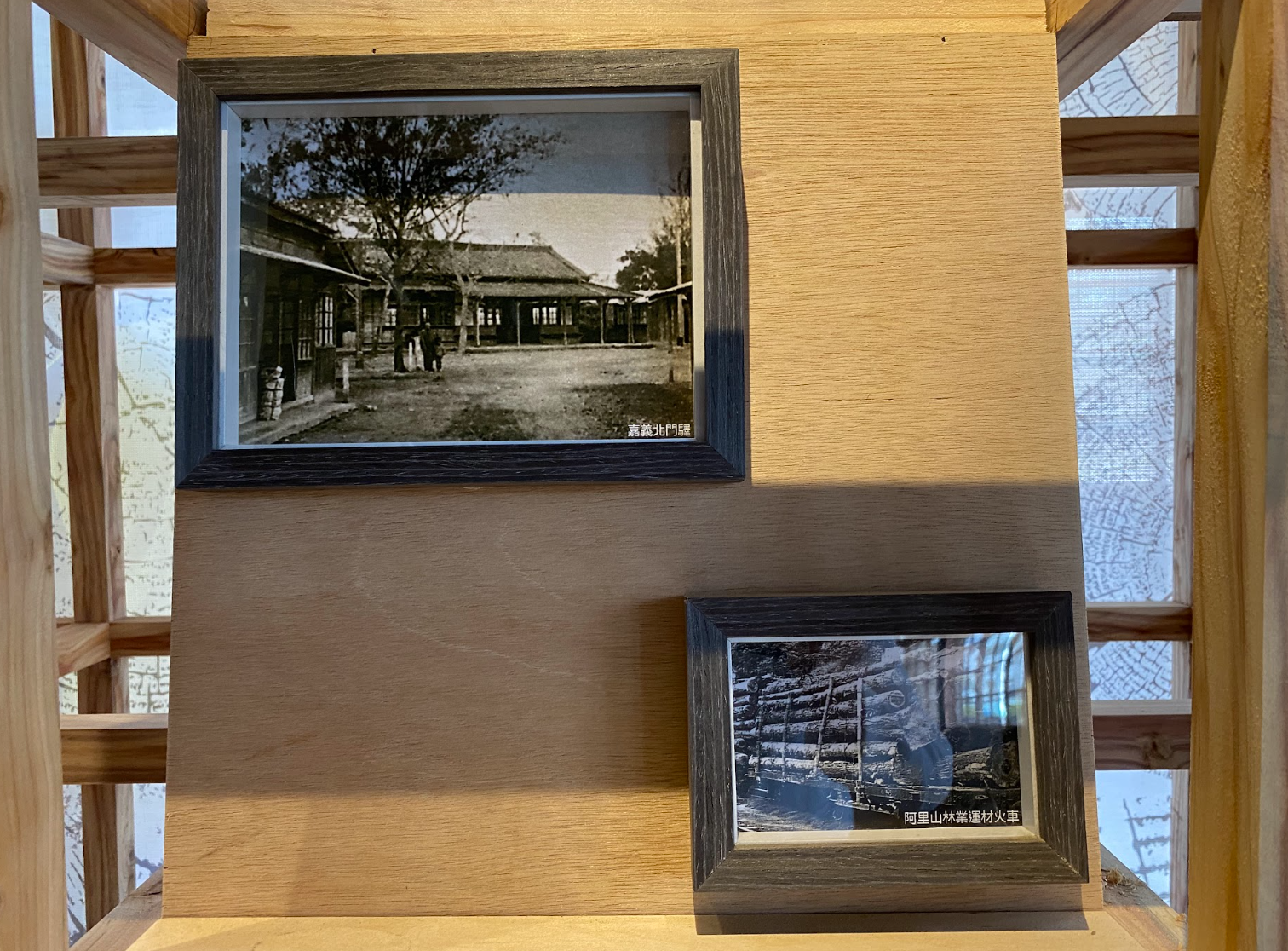 接著,另一面牆鑲嵌的是北門驛意象,尤其喜歡阿里山森林鐵路的工作服(也太帥氣太好看了吧),讓我們從北門驛出發,看一根根木頭如何形塑木都的美名。