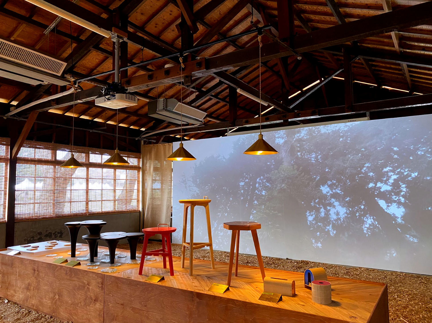 再來,四大展台上,陳列著木之象限領域:木產業、木傳統、木藝術及木生活,透過跨領域的世代合作,木頭的各式運用被賦予了各種美的面貌,用另一種方式,讓大家近距離感受木頭厚實的質地。