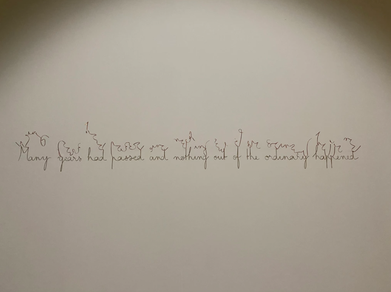 在眾多藝術品中,我覺得最美的,是Fred Eerdekens的文字作品。可能也因為自身對於美好的文字總無法抗拒,透過彎彎曲曲的線條所折射而出的是─Many years had passed and nothing out of ordinary happened. 經過多年,一切如常。字母的影子,這麼的美,富有詩意,在心底蕩漾久久、久久。